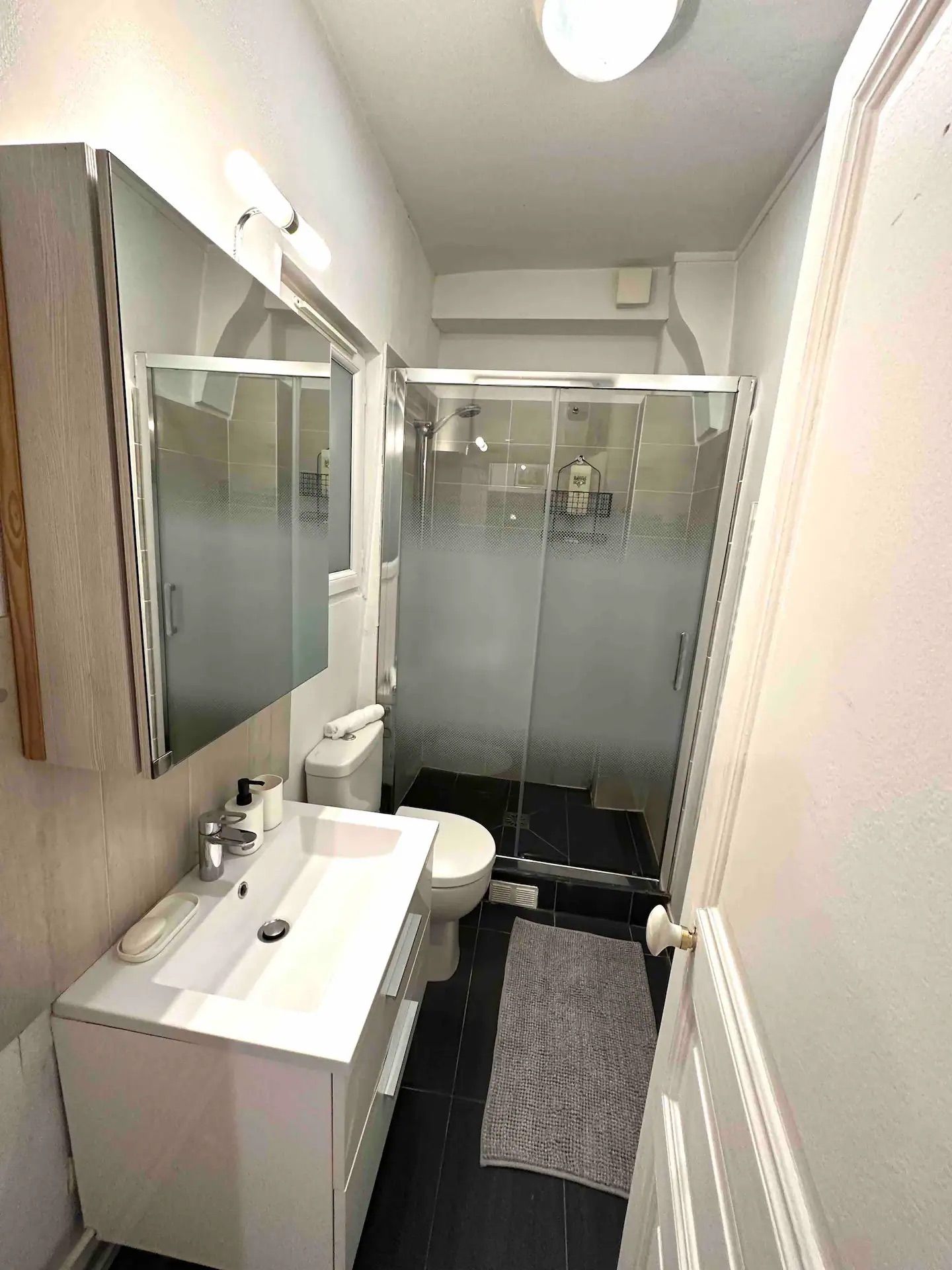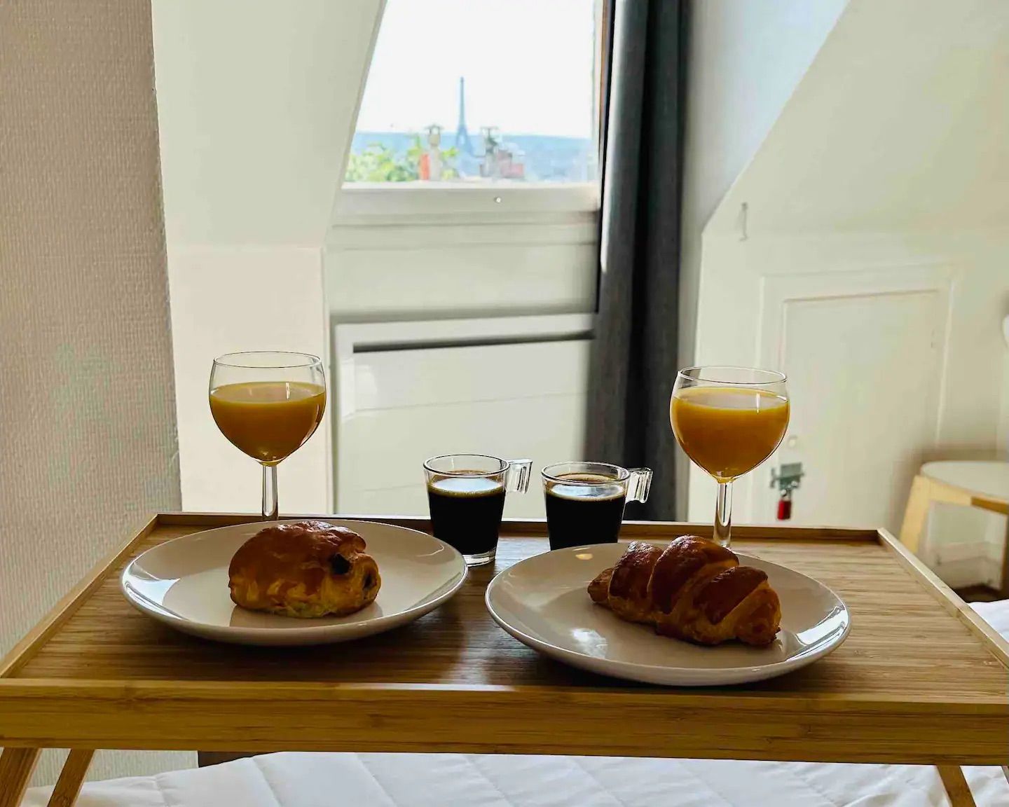 The space is a studio for 3 people, on a 5th floor without elevator, and smartly equipped with all the amenities you need plus an absolutely amazing view of the Eiffel Tower.